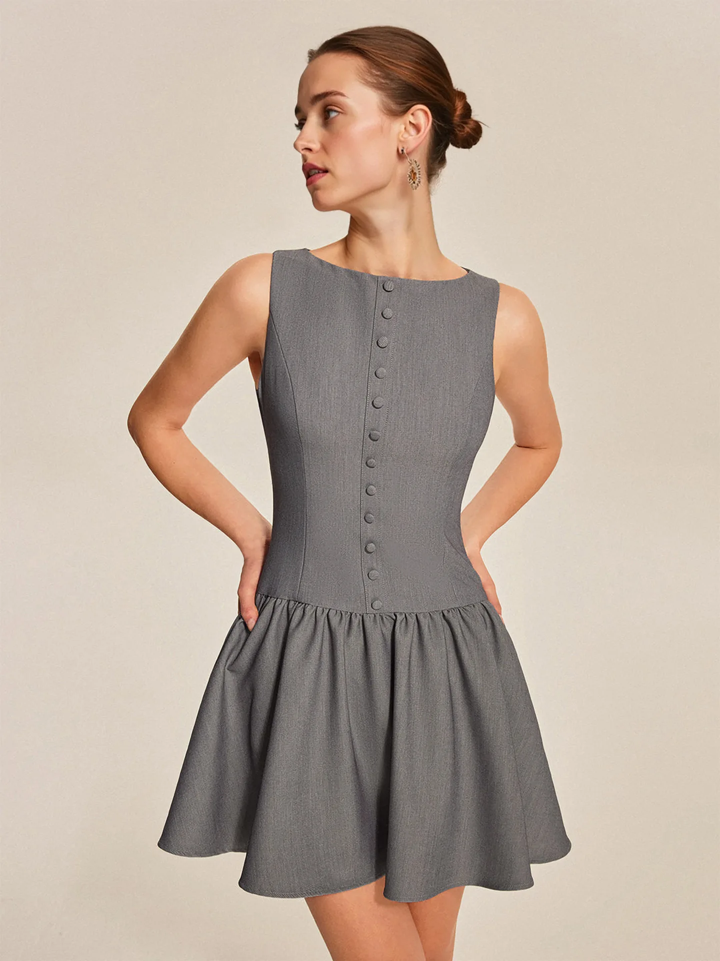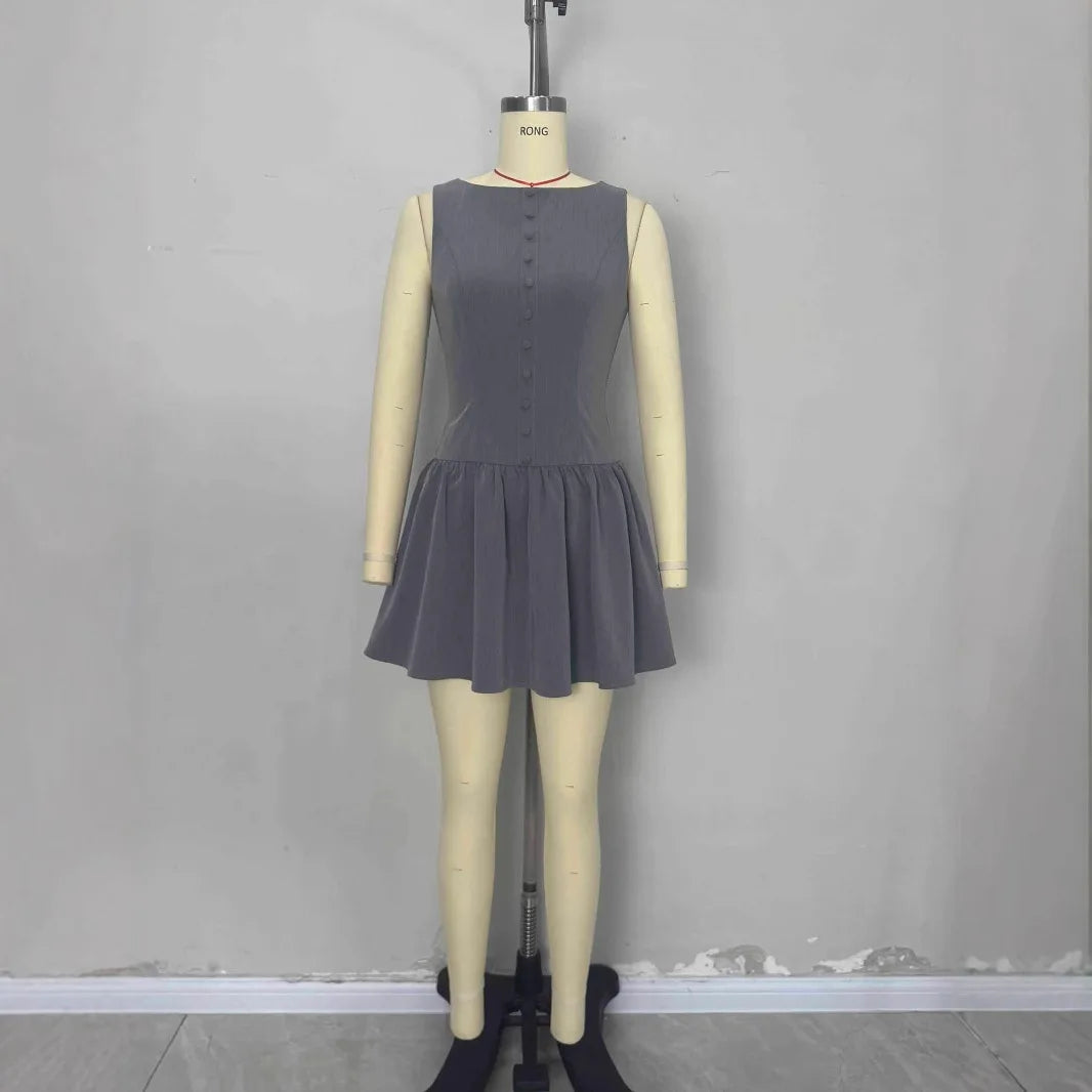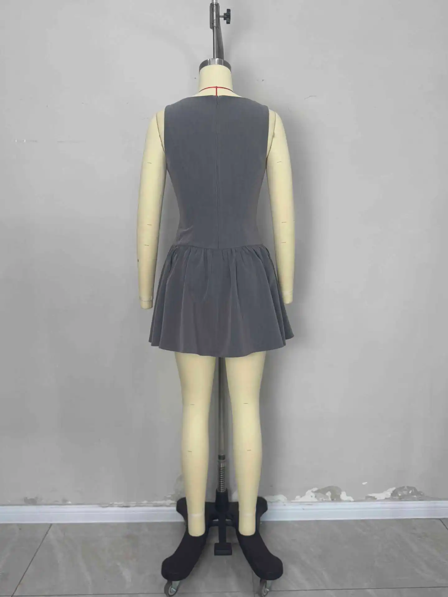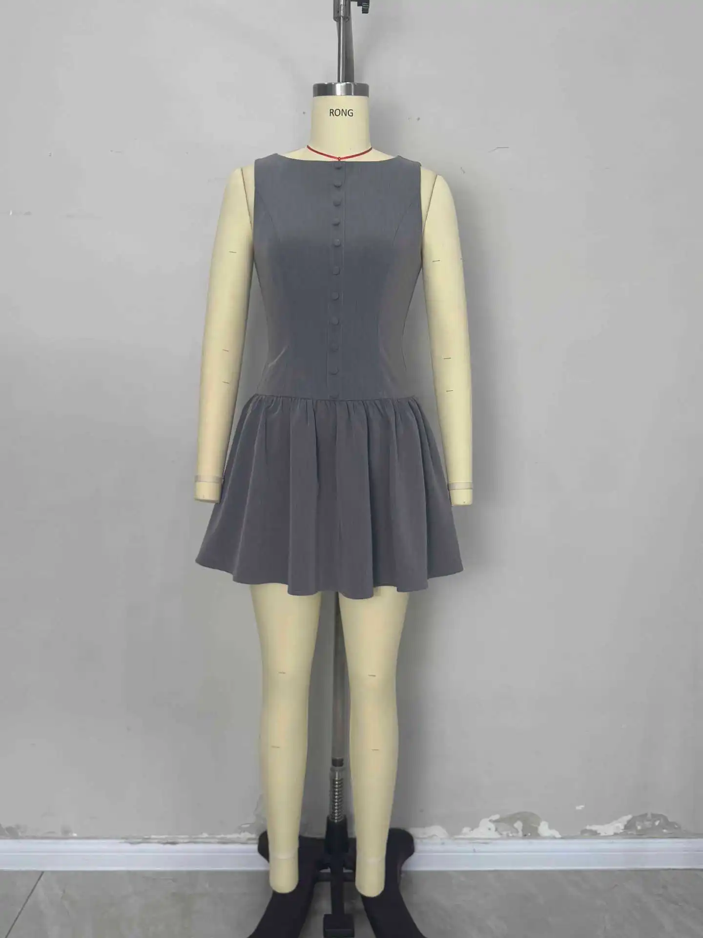 Boutique Wholesale 2025 Summer New Fashionable Round Neck Sleeveless Casual Ruffled Elegant Women's Dress